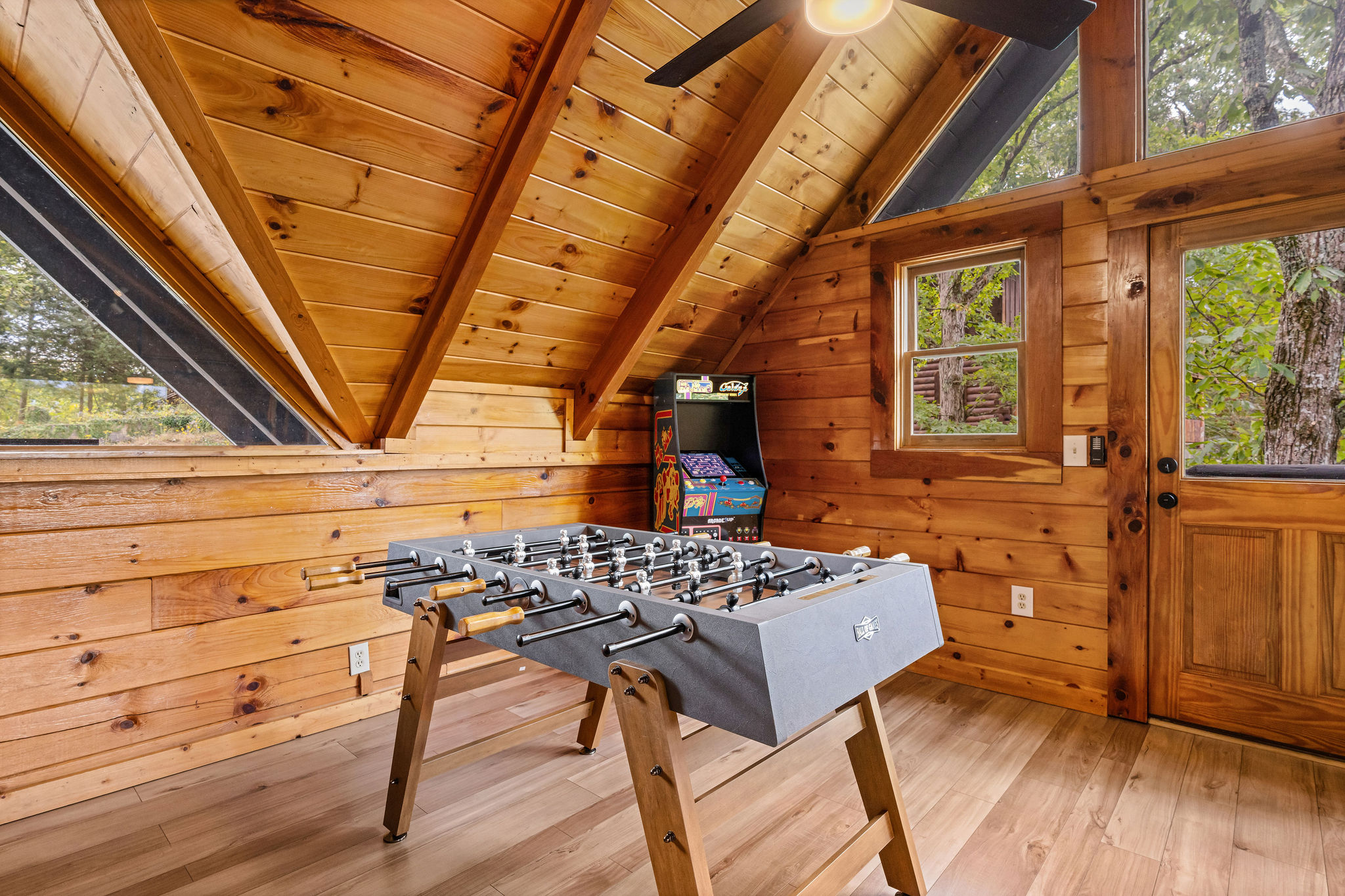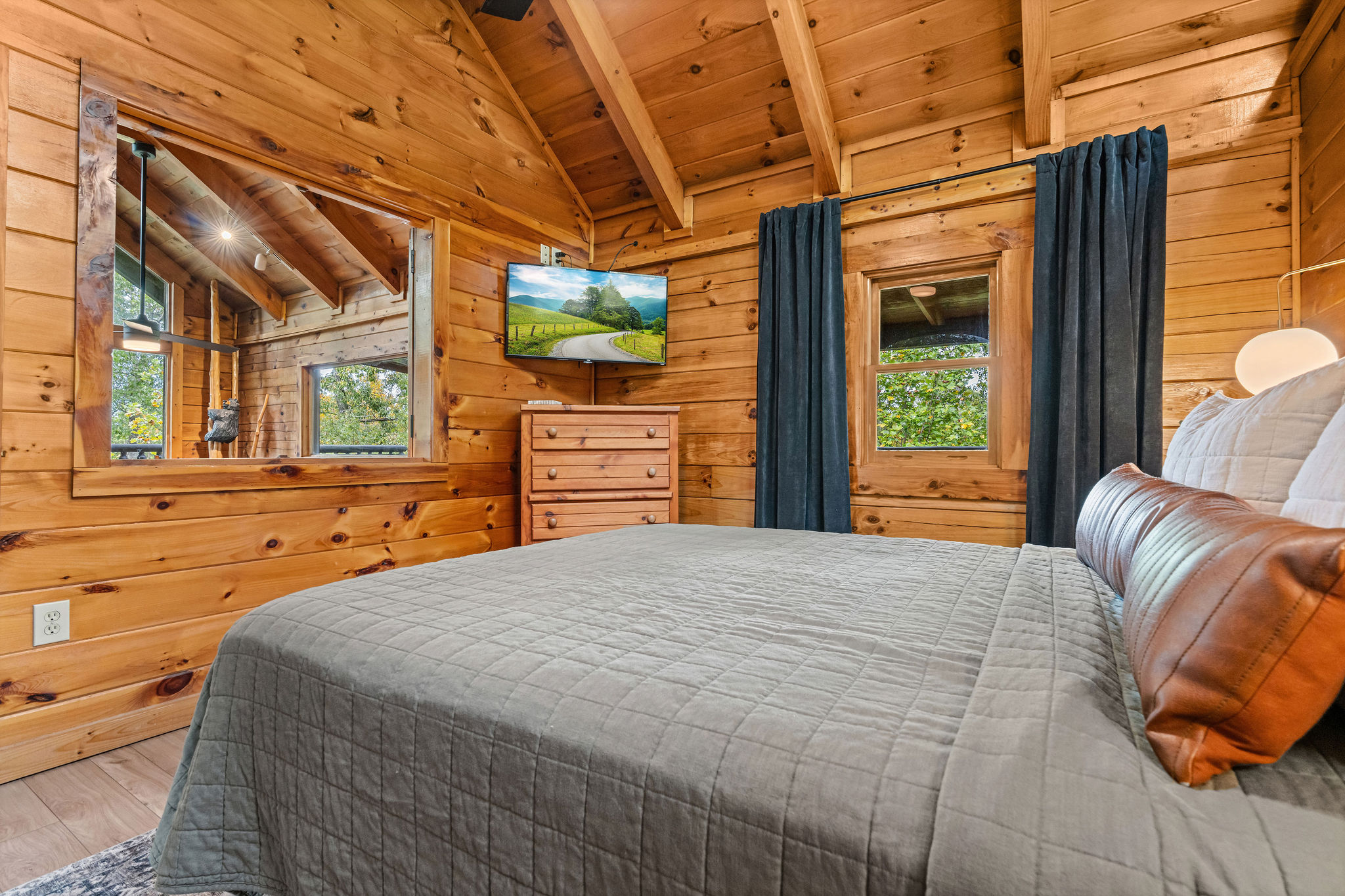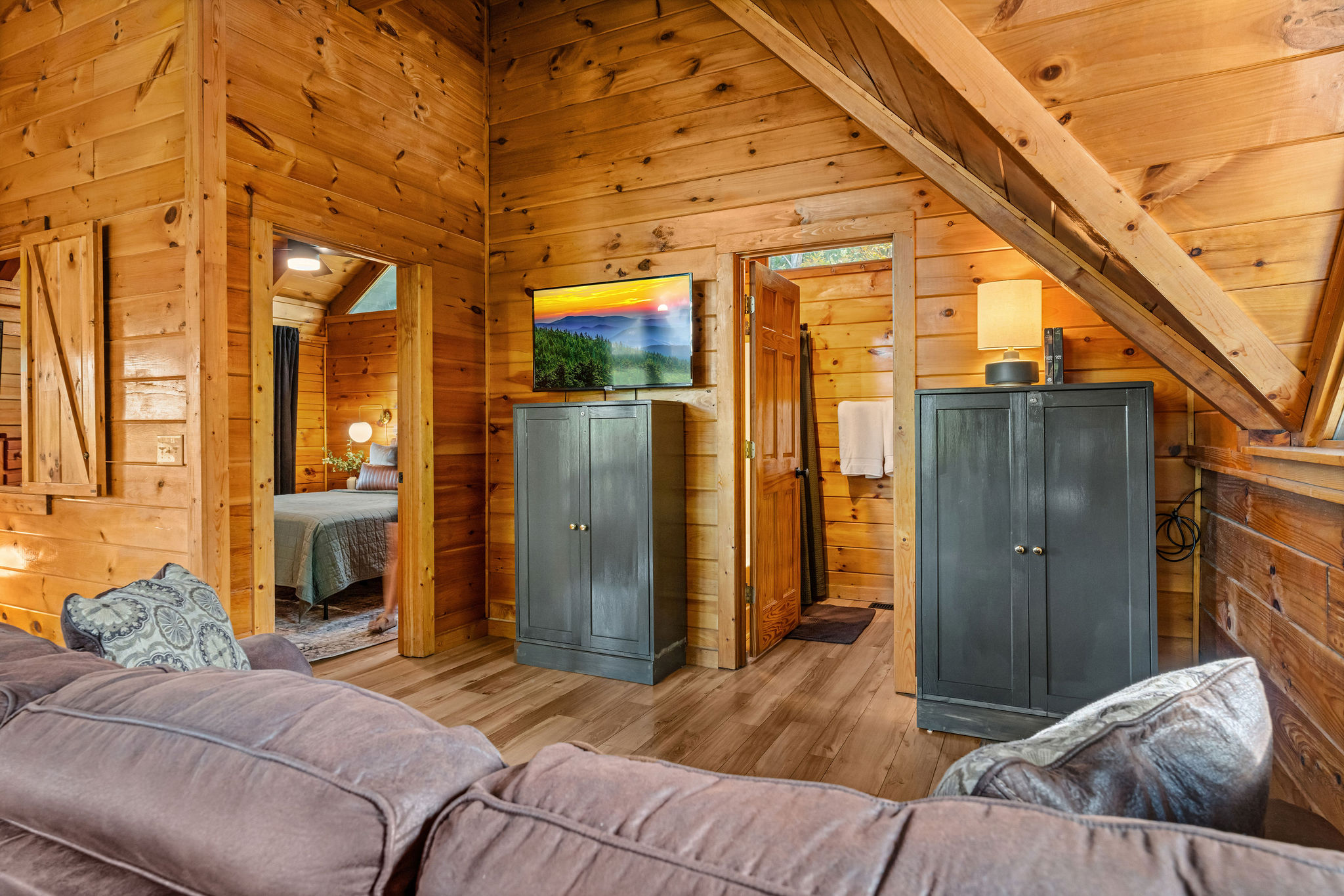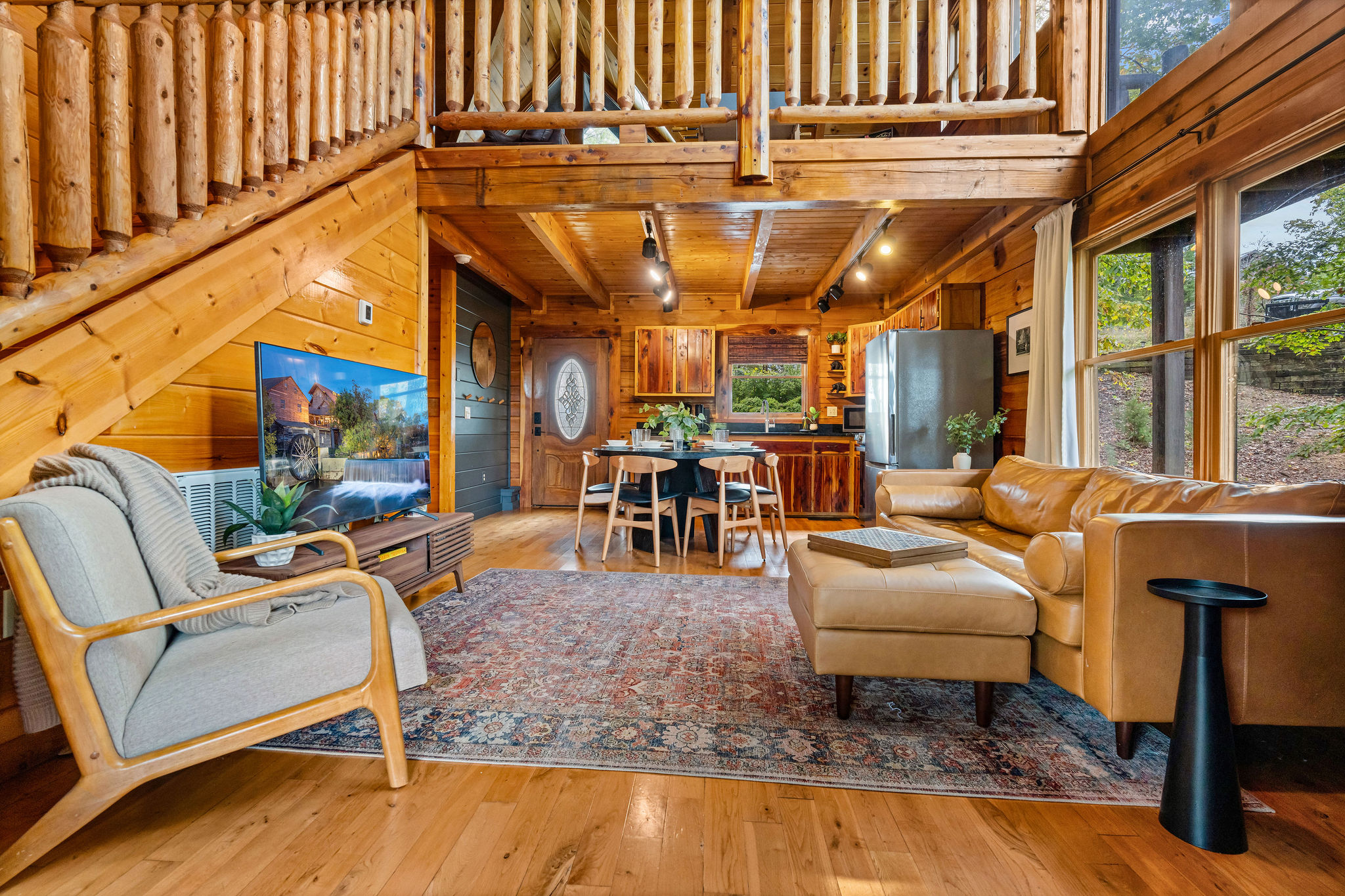 2 Bedrooms • 2 Bathrooms 2 Baths • Sleeps 3-6Roman’s Retreat is a beautiful 2 bedroom/2 story log cabin positioned just outside of Pigeon Forge, minutes away from The Parkway. From the moment you walk in, you’ll feel right at home. Relax while taking in the beautiful mountain views from the private hot tub on the back deck, play a game of pool with friends in the loft, or cozy up with a blanket by the fireplace to watch a movie or play a games with the family.